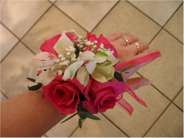 | | Bracelet en roses roses, alstros blanches et gypsophile | Livraison gratuite sur commande en ligne |